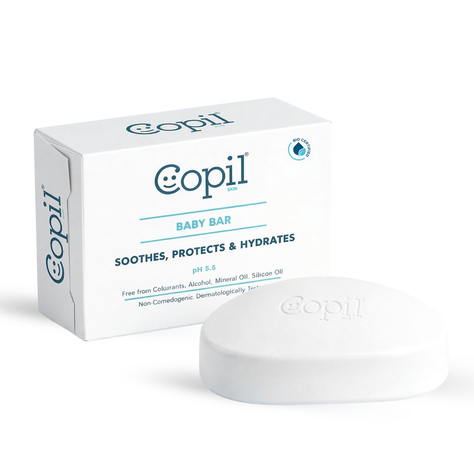Copil Baby Cleansing Bar is a dermatologically tested baby soap for newborns designed for delicate and sensitive skin. Made with a mild pH 5.5 syndet base, it gently cleanses while maintaining the skin’s natural protective barrier.